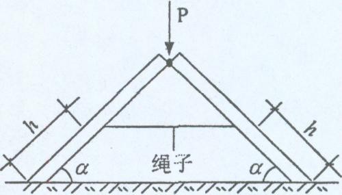 3、(0分) 【真题】图示人字梯放置在光滑(忽略摩擦)地面上,顶端人体重量为P。关于绳子拉力与梯子和地面的夹角