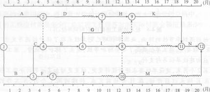 32、某工程,建设单位与施工单位按照《建设工程施工合同(示范文本)》签订了施工合同,采用可调价合同形式。工期20个月,项目监理机构批准的施工总进度计划如图4-7所示,各项工作在其持续时间内均按匀速进展,每月计划完成的投资(部分)见表4-10。
