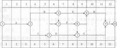 图4-9室内装饰工程时标网络计划图(时间单位:周)