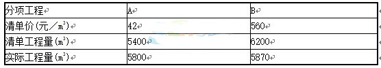 分项工程A、B施工完成后,其相关参数统计如下表,造价工程师对此两项进行价款计算。