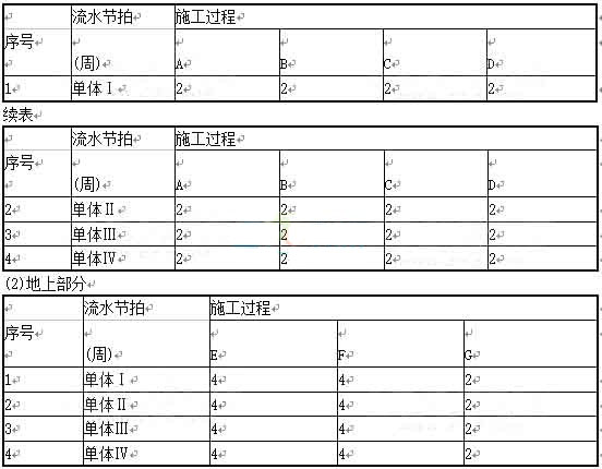 某工程由四幢完全相同的砖混住宅楼组成,某建筑公司中标后,施工组织设计中考虑以每个单幢为一个施工流水段组织单位工程流水施工。经测算,各施工过程及流水节拍参数如下: