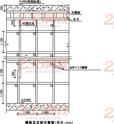事件3:施工总承包单位根据建筑施工模板安全技术规范,编制了大堂顶板模板工程施工方案,并绘制了模板及支架示意图,如下图所示。监理工程师审查后要求重新绘制。