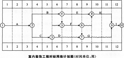 事件3:施工总承包单位按要求向项目监理机构提交了室内装饰工程的时标网络计划图(如下图所示),经批准后按此组织实施。