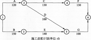 (3)按照持续时间最长法,本工程关键线路为:①→③→⑤→⑥。