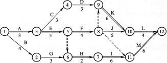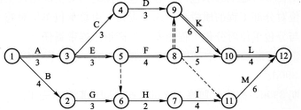 其中:关键线路为A→E→F→K→L或①→③→⑤→⑧→⑨→⑩→12;