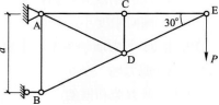 以E点为计算平衡点,则CE杆受力、外力P合成为DE杆的内力,即NDE=P/sin30°=2P。