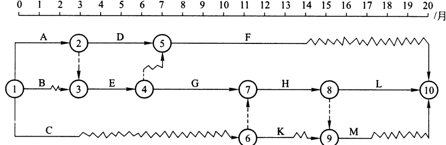某工程施工进度计划网络图如下所示,假定各项工作均匀速施工。由于工作B、工作 C、工作H为采用特殊工艺的施工过程,涉及某专利技术的采用,故这三项工作只能由某 一特定的施工队来完成。