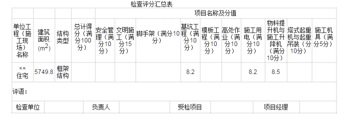 (5)计算各分项检查分值,填人检查评分汇总表,并计算本工程总计得分。