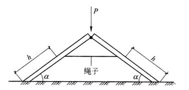 图示人字梯旋转在光滑(忽略摩擦)地面上,顶端人体重量为P。关于绳子拉力与梯子和地面夹角a、绳子位置高度h关系的说法,正确的是( )。