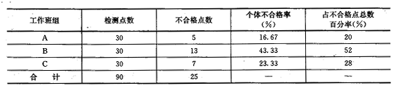 | 您的答案: 标准答案: (1)①③④⑤。 (2)干密度。由于该大坝为壤土均质坝,对于黏粒偏高的壤土,填筑压实标准应采取干密度来控制。 土料填筑压实参数主要包括碾压机具的重量、含水量、碾压遍数及铺土厚度等。 (3)具体措施主要有: ①改善料场的排水条件和采取防雨措施; ②含水量偏高的土料进行翻晒处理,或采取轮换掌子面的办法; ③采用机械烘干法烘干等。 (4)分层法列表如表 根据以上分层调查的统计数据表可知,B班组的施工质量对总体质量水平影响最大。 |
