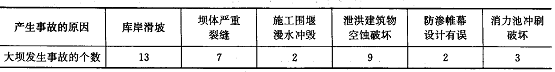现对若干个水利工程大坝出现事故的情况进行分析的结果得知,产生事故的原因有以下几方面见表。