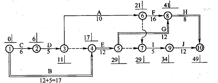 按D→A→I顺序组织施工的网络图如图。