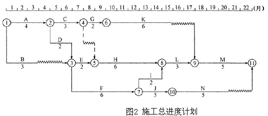 在工程开工前,施工单位在合同约定的日期内向总监理工程师提交了施工总进度计划(如图2 所示)和一份工程报告。