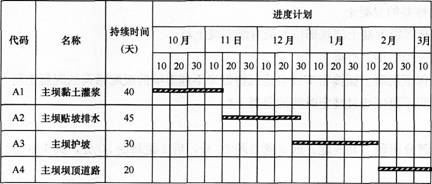 事件1:依据已批准的进度计划,结合现场实际,项目部制定了主坝项目的横道图进度计划如下: