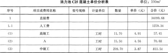 3.若消力池立模系数为0.8m2/m3,模板制作、安装、拆除综合单价的直接费为40元/m2。计算每m3消力池C25混凝土相应模板直接费和摊入模板费用后消力池C25混凝土单价直接费。(计算结果保留小数点后2位)