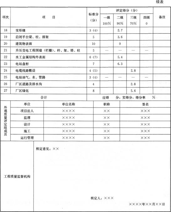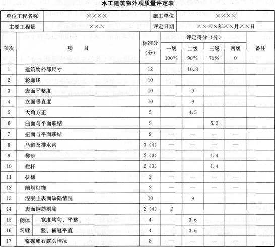 事件4:单位工程完工后,及时进行了外观质量评定,评定结果如下: