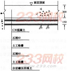 经过招投标,A施工单位承担了港区500万m3的吹填及10万m2的道路及堆场的施工任务。道路及堆场的典型设计断面如下图所示。