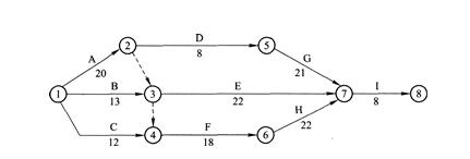 某水利水电施工承包商与业主签订了一份堤防工程施工合同,合同约定工期为68天,承包商工期每提前1天获奖励2000元,每拖后1天支付违约金3000元。承包商提交的施工网络进度计划如下图所示,该计划得到业主代表的认可。