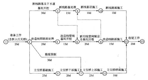 某公司承接了某城市道路的改扩建工程。工程中包含一段长240m的新增路线(含下水道200m)和一段长220m的路面改造(含下水道200m),另需拆除一座旧人行天桥,新建一座立交桥。工程位于城市繁华地带,建筑物多,地下管网密集,交通量大。