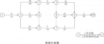1.该工程的总工期=15+30+50+40+10=145(d)。关键路线为A、B、F、H、J。