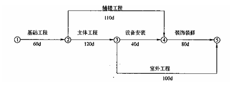 办公楼由 12 层主楼和 3 层辅楼组成,施工前,甲乙双方签订了施工合同,乙方提供了粗略的施工网络进度计划,并得到了甲方的批准。该网络进度计划为下图所示。