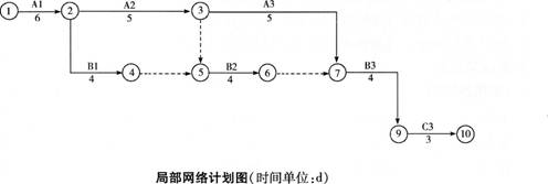 34、某项目部针对一个施工项目编制网络计划图,下图是计划图的一部分: