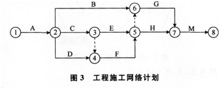 4.如果该工程的施工网络计划如图3所示,则压缩哪些关键工作可能改变关键线路,压缩哪些关键工作不会改变关键线路?