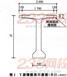 某公司承建一座市政桥梁工程,桥梁上部结构为9孔30m后张法预应力混凝土T梁,桥宽横断面布置T梁12片,T梁支座中心线距梁端600mm,T梁横截面如图1所示。