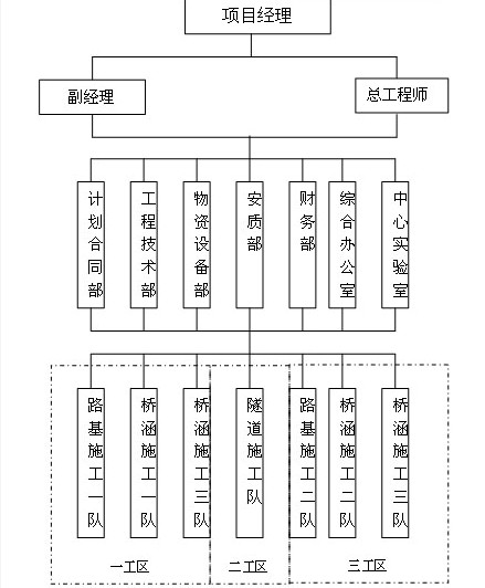 1、本工程的长度为28km,工期16个月,工程类型包括路基、桥涵和隧道的特点,考虑路基的调配方案和隧道出碴的利用,可将工程化分为如下三个施工工区。
