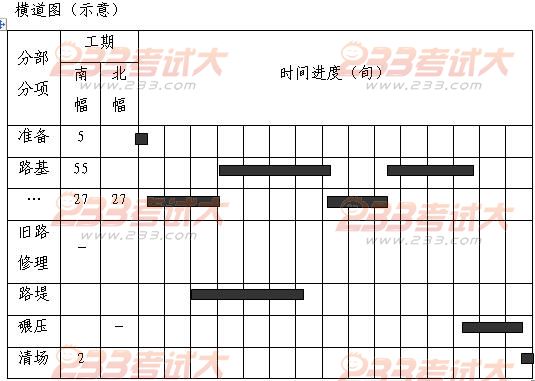 3、可用流水作业,压缩工期是关键工作的上的南北幅的路基路面,可以同时施工,交叉作业。(6分)