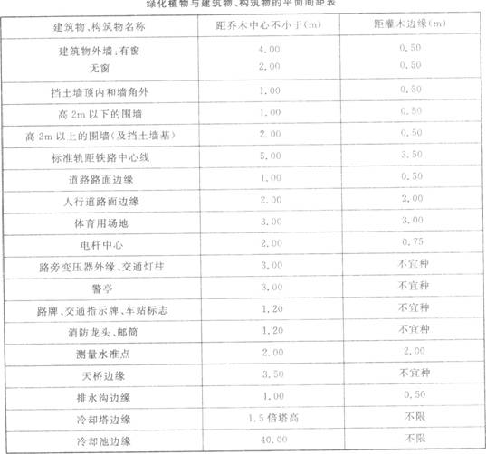 14.B【解析】本题考核绿化植物与建筑物、构筑物的平面间距。绿化植物与建筑物、构筑物的平面间距应满足下表的要求。