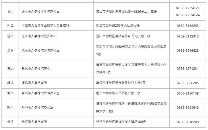 全省人事考试机构咨询服务电话