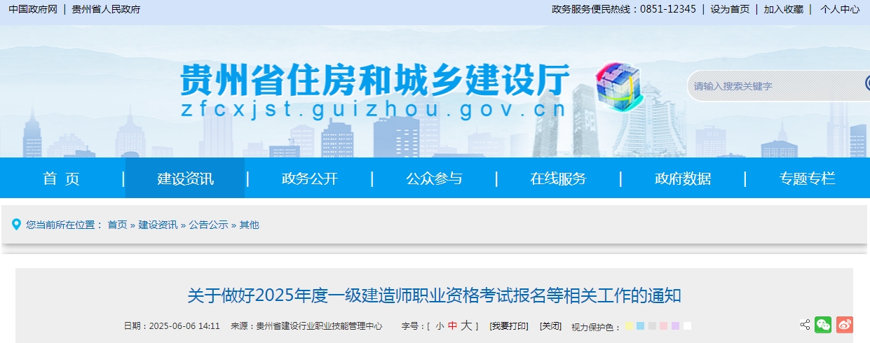 贵州省发布通知,将于2025年9月20日至21日举行一级建造师职业资格考试。考试科目包括建设工程经济、法规及相关知识、项目管理和专业工程管理与实务。符合条件的考生可于6月16日至30日进行网上报名。考试大纲使用2024年版,教材由考生自行选择。