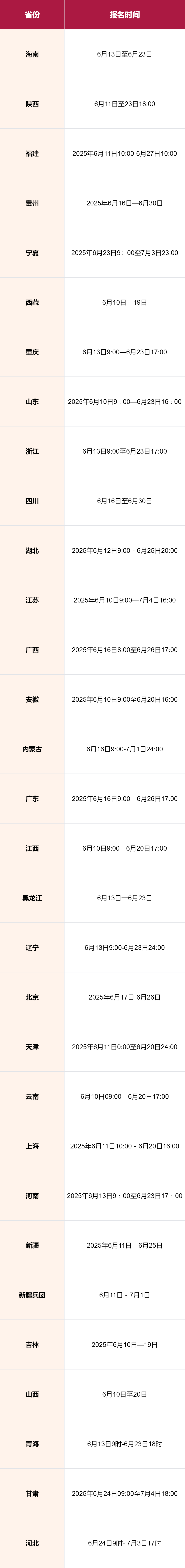 网上报名时间:2025年6月24日09:00至7月4日18:00