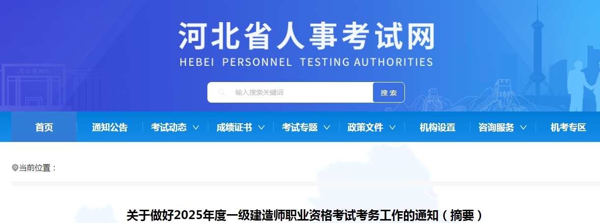 根据人力资源和社会保障部人事考试中心《关于2025年度一级建造师职业资格考试考务工作的通知》(人考中心函[2025]19号)精神,为做好我省2025年度一级建造师职业资格考试考务工作,现将有关事项通知如下: