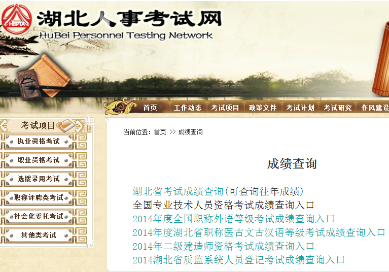 湖北2014年一级建造师考试成绩查询及成绩查询官方入口为湖北人事考试网(www.hbsrsksy.cn)“成绩查询”频道(页面右侧“网上考务一栏”)。