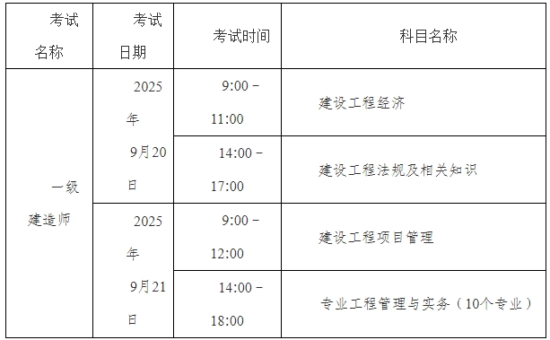 2025年湖北一级建造师报名于6月12日开始,6月25日截止。6月12日至6月27日进行资格审核与缴费。9月15日至21日打印准考证,考试时间为9月20-21日。考试设4科,需在规定年限内通过。实务科含10个专业。考生凭准考证和身份证入场。