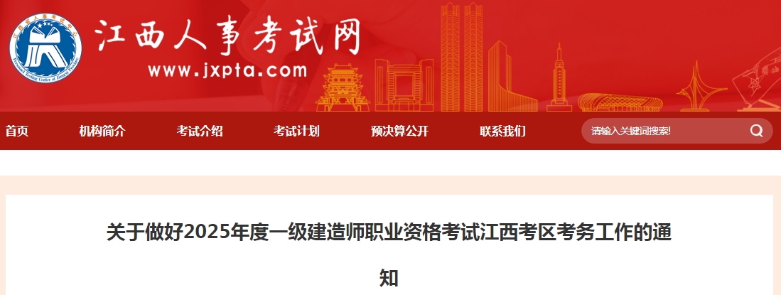 根据《人力资源社会保障部办公厅关于2025年度专业技术人员职业资格考试计划及有关事项的通知》(人社厅发〔2025〕1号)及《人力资源和社会保障部人事考试中心关于2025年度一级建造师职业资格考试考务工作的通知》(人考中心函〔2025〕20号)精神,为做好2025年度一级建造师职业资格考试江西考区考务工作,现将有关事项通知如下: