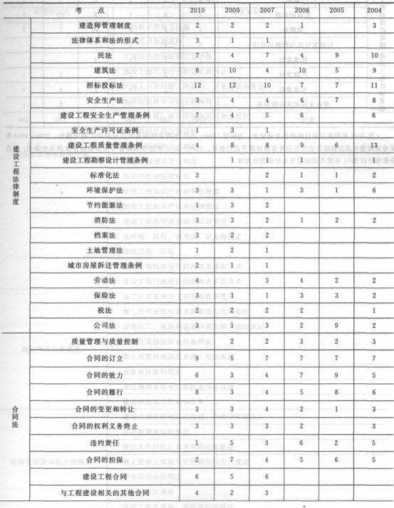 因2011年版教材修订的内容变动较大,为保证2004—2010年度考试试卷考点分值统计的完整性,2004—2010年