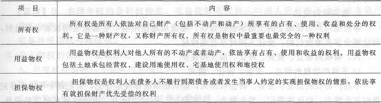物权的特征;物权的种类;地役权;物权的设立和转让;建设工程债的发生根据。