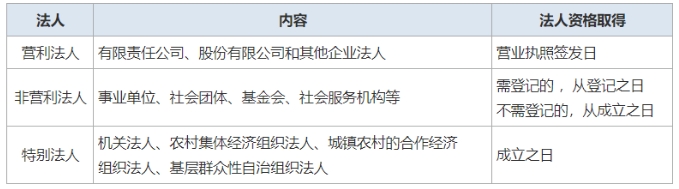 (2)法人的分类:营利法人、非营利法人和特别法人