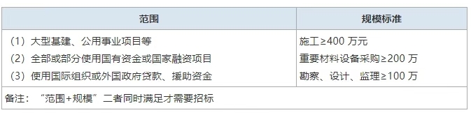 考点3、建设工程法定招标的范围和规模标准