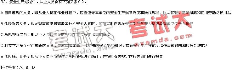 解析:安全生产中从业人员的权利有: 1)知情权; 2)建议权; 3)批评权和检举、控告权; 4)拒绝权; 5)紧急避险权; 6)依法向本单位提出要求赔偿的权利; 7)获得符合国家标准或者行业标准劳动防护用品的权利; 8)获得安全生产教育和培训的权利。