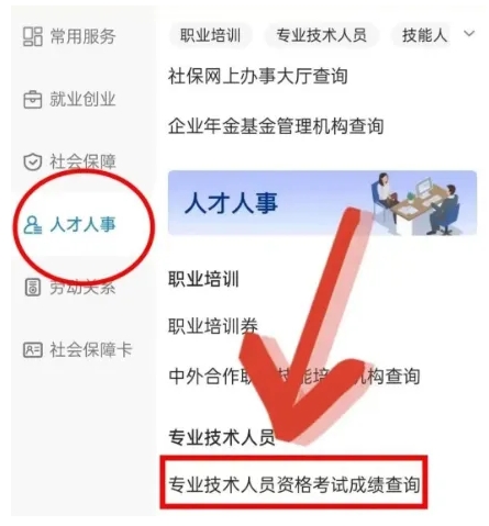 3、选择“人才人事”、点击“专业技术人员资格考试成绩查询”;