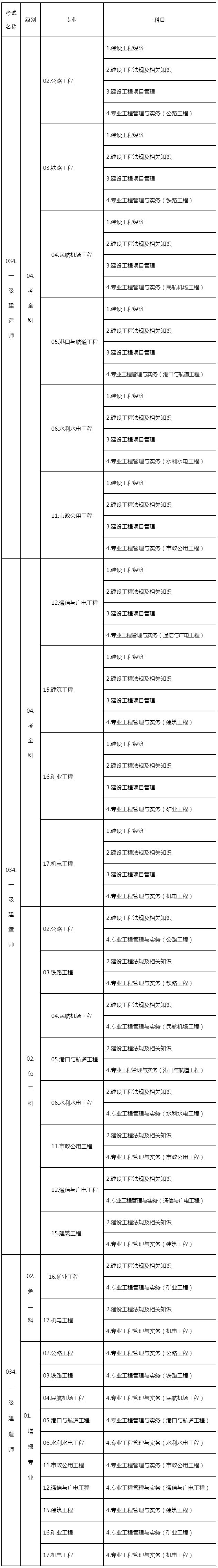 附件:2025年度一级建造师职业资格考试名称、级别、专业及科目信息