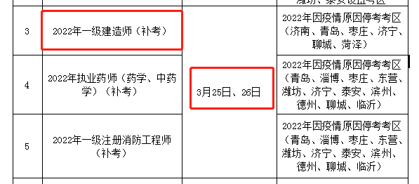山东省人力资源和社会保障厅发布的2022年一级建造师补考时间安排的内容如下: