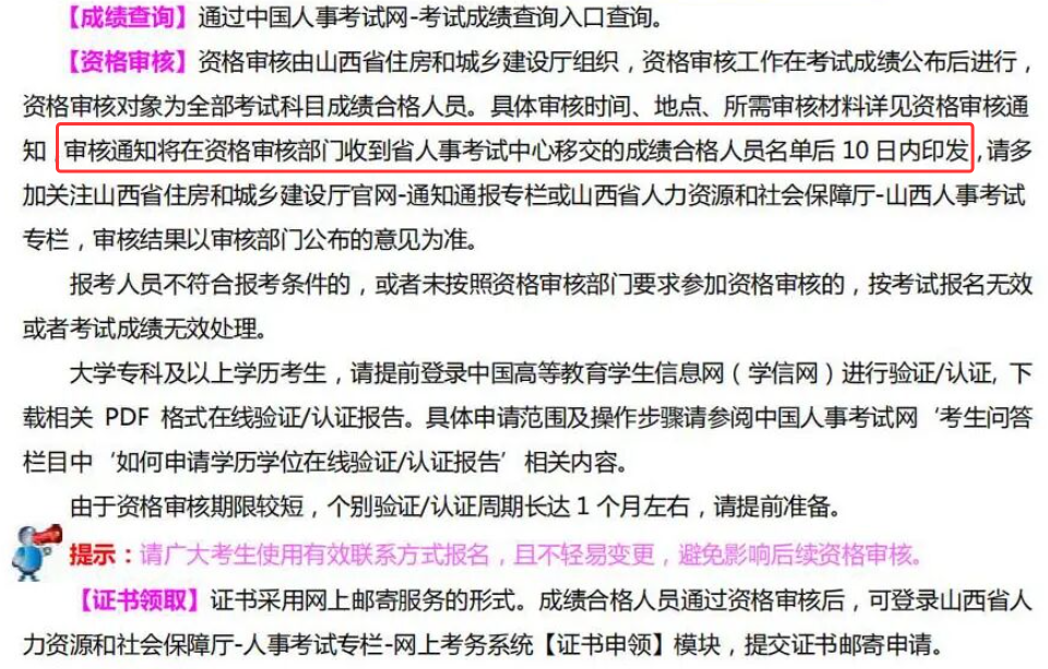 山西2025年一建考生请注意!考试通过并非终点,考后资格审核至关重要。官方将另行发文通知,需密切留意两个指定官网。审核通过者方可登录系统申请证书邮寄,逾期未审视为自动放弃资格。