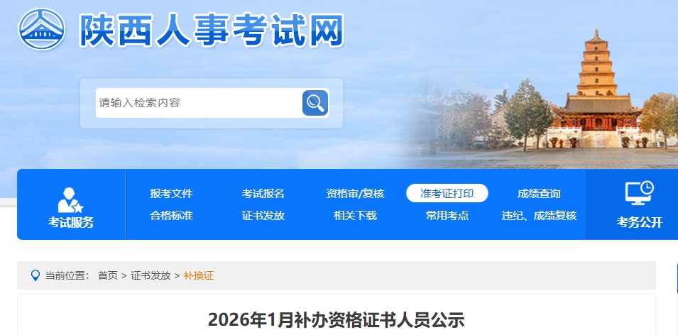 1月30日,陕西人事考试网发布《2026年1月补办资格证书人员公示》,明确陕西2026年1月一级建造师补办资格证书人员公示时间是2026年1月30日至2026年2月5日。