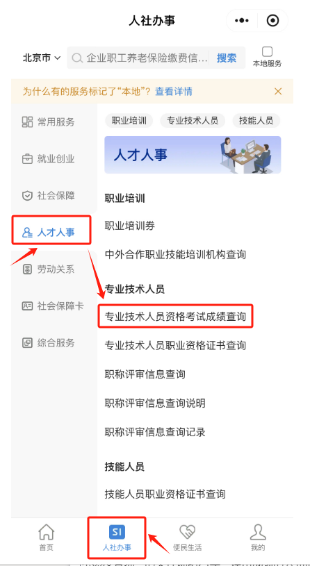 第三步:选择“人才人事”、点击“专业技术人员资格考试成绩查询”;