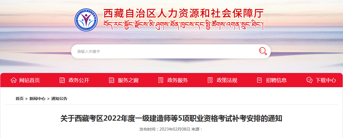 根据人力资源和社会保障部人事考试中心《关于做好2022年度一级建造师资格考试等5项职业资格考试补考考务工作的通知》(人考中心函〔2023〕14号),为做好西藏考区2022年度一级建造师、执业药师、一级注册消防工程师、经济(初、中级)、一级造价工程师5项职业资格考试补考工作,现将有关事项通知如下: